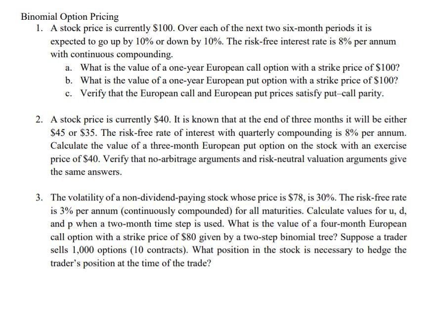 Solved Binomial Option Pricing 1 A Stock Price Is Currently Chegg Com